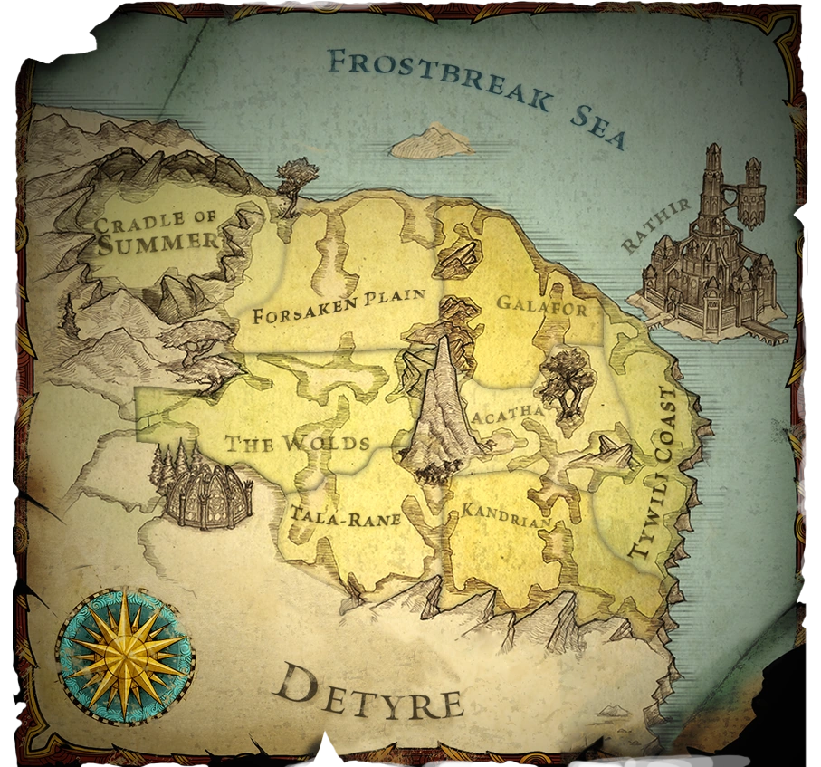 Hace mucho tiempo, el Alfar señores de Kandrian Mantenga gobernó el extremo este de las Llanuras de Erathell con mano de hierro, la protección de la tierra de las bestias y bandidos, mientras que la defensa de las leyes de Rathir. En los últimos años, el actual señor de Kandrian se ha retirado hacia el interior, con la seguridad de la torre del homenaje y la ciudad de Mel Aglir para albergar a sus fuerzas. Esta postura defensiva ha dejado a la Tywili Costa, Acatha, y Kandrian abrirse a los ataques de los Tuatha, dejando gran parte de la tierra a merced de las fieras [[]] Tuatha asaltantes.