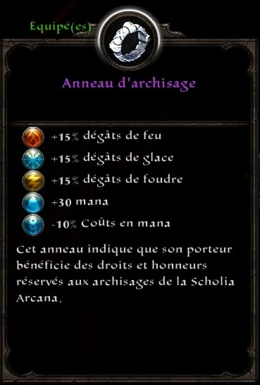 Cet anneau indique que son porteur bénéficie des droits et honneurs réservés aux adeptes de la Scholia Arcana.