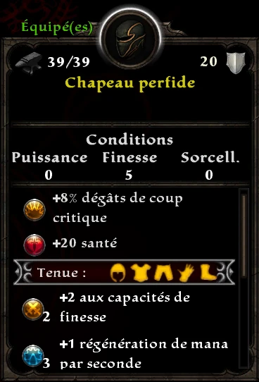 - 2 pièces: +2 aux capacités de finesse