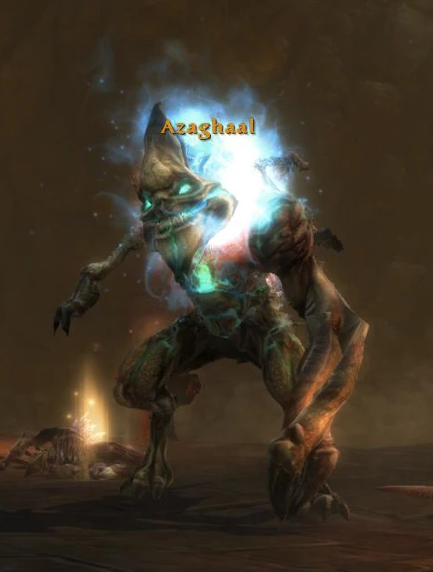 Azaghaal is a Niskaru Horrinox that appears in Urul-Tusk during the quest The Great General. No lore is specifically known about Azaghaal, but given that it appears in the same chamber as the Piercing Light, a weapon especially powerful against Niskaru, it likely appears in an attempt to prevent General Tilera from recovering the Piercing Light.