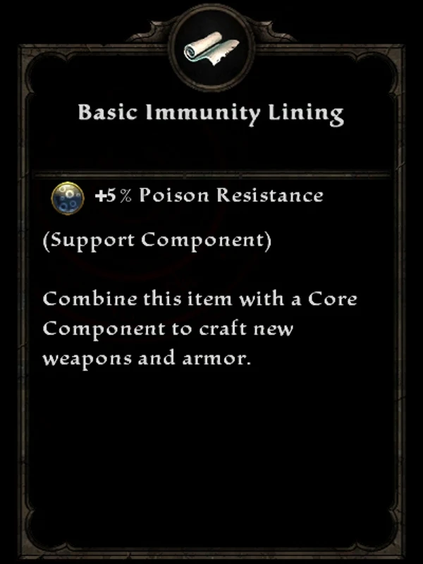 Basic Immunity Lining is a basic component that can be added to an item during blacksmithing. It has the following effects: