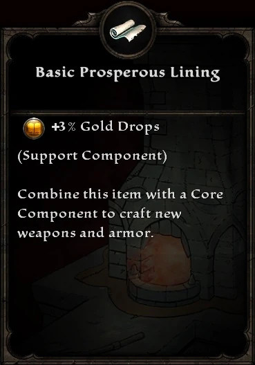 Basic Prosperous Lining is a component that can be added to an item during blacksmithing. It has the following effects: