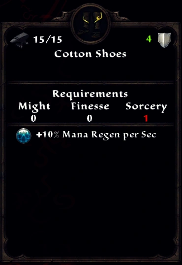All other generic Cotton Shoes have a Sorcery requirement of 1.
