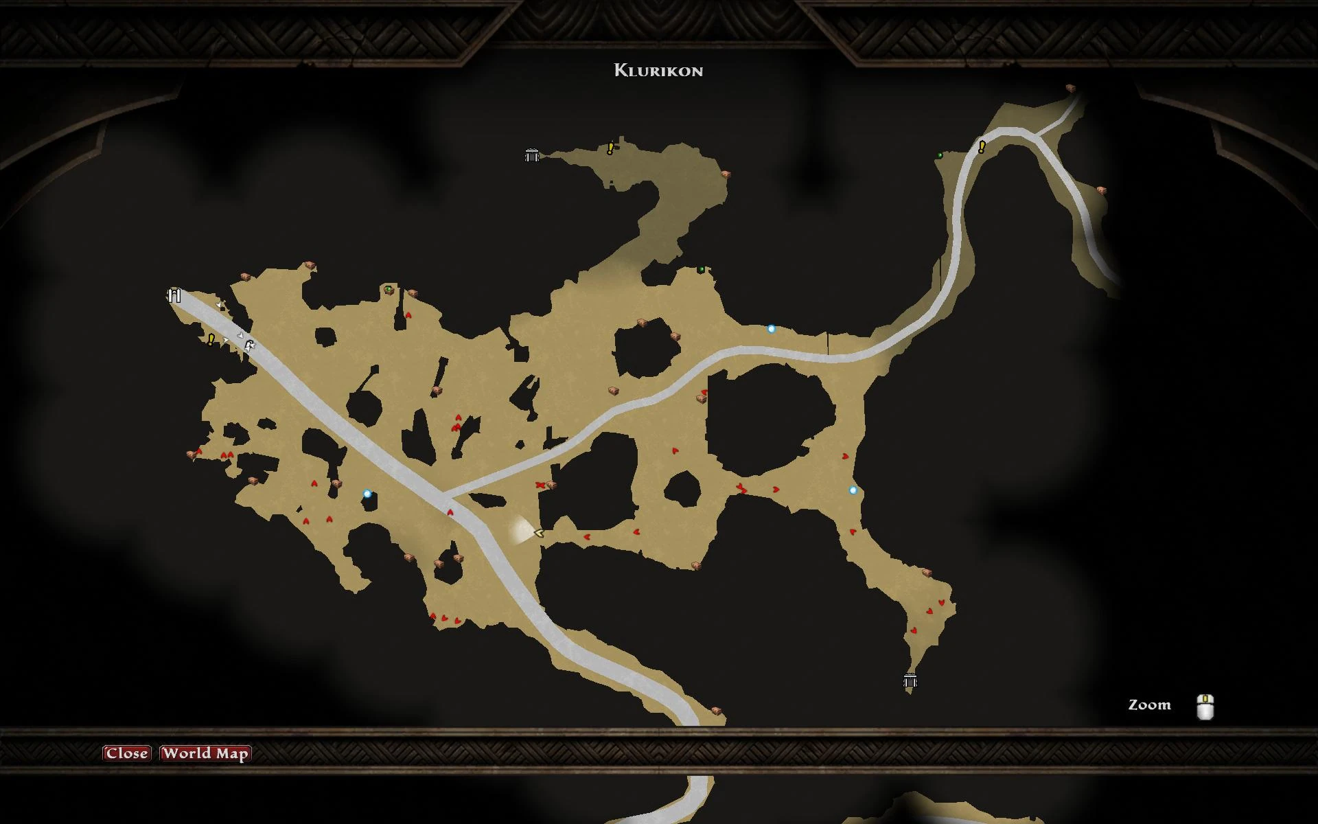 The Cursewood is accessible after completing Breaking The Siege. It is located int the North-West corner of Klurikon. A path to the east connects to The Midden and a main road (more like a gouge) connects to the Drowned Forest.