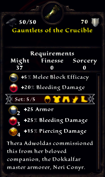 Gauntlets of the Crucible are part of the Crucible Armor Set, which provides the following bonuses: