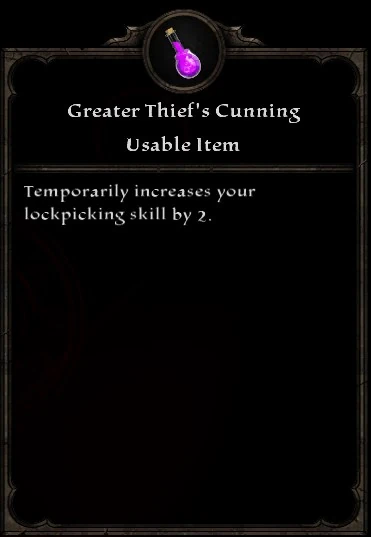 - Temporarily increases your lockpicking skill by 2.