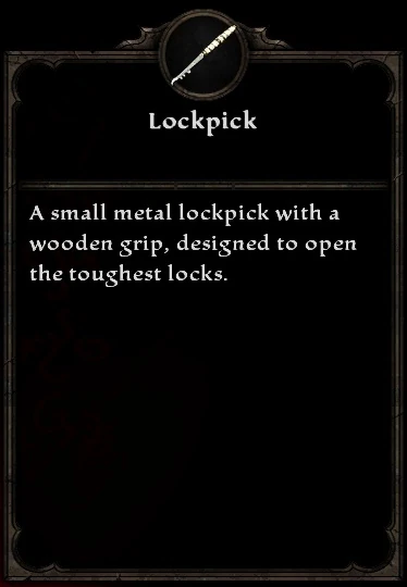Lockpicks are required whenever you attempt to use the Lockpicking skill. If you're out of lockpicks, you can't open locked doors, chests, etc. They can be found as random loot from enemies and chests or they can be bought from merchants.