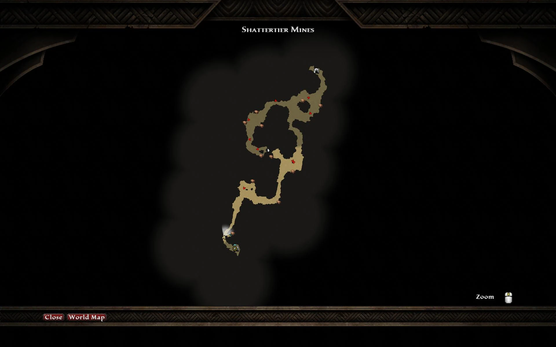 The mine is fairly linear with one loop and drop-down in the center. The northern most tunnel leads to the ruins of Foes' Hearth.