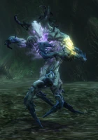 A Thresh is arguably the most difficult non-boss enemy in the game if its level is scaled to the player's. Unlike most other difficult enemies such as Trolls and Crudoks, a Thresh's attacks are both powerful and continuous, unleashing volley after volley of powerful attacks with very small pauses in between. At range, Threshes are very fast and can strafe you with magical arrows as it circles and keeps its distance. They will switch between said volleys of magic and rooting themselves in the ground, launching slightly homing "shockwaves" of roots along the ground. These roots are very poor at homing around solid environmental objects like trees or big rocks, and once rooted the Thresh will not move until it has fired four roots, very useful for playing defensively while handling additional enemies (like Boggarts). In melee, Threshes can both absorb and deal large amounts of damage.