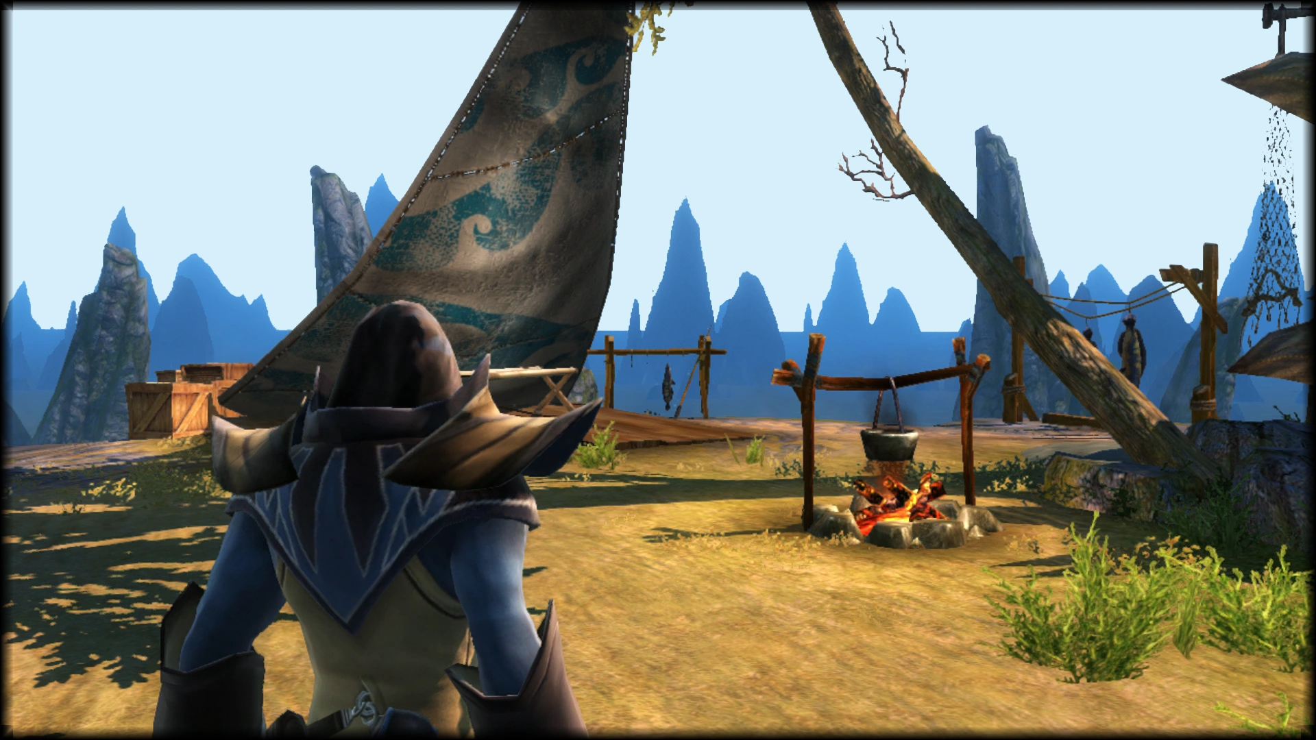 Zefwyn's Camp is a small cliff-side camp at the southwestern corner of Gallows End overlooking the Frostbreak Sea. It is inhabited by Zefwyn Lan, who lives there on his own.